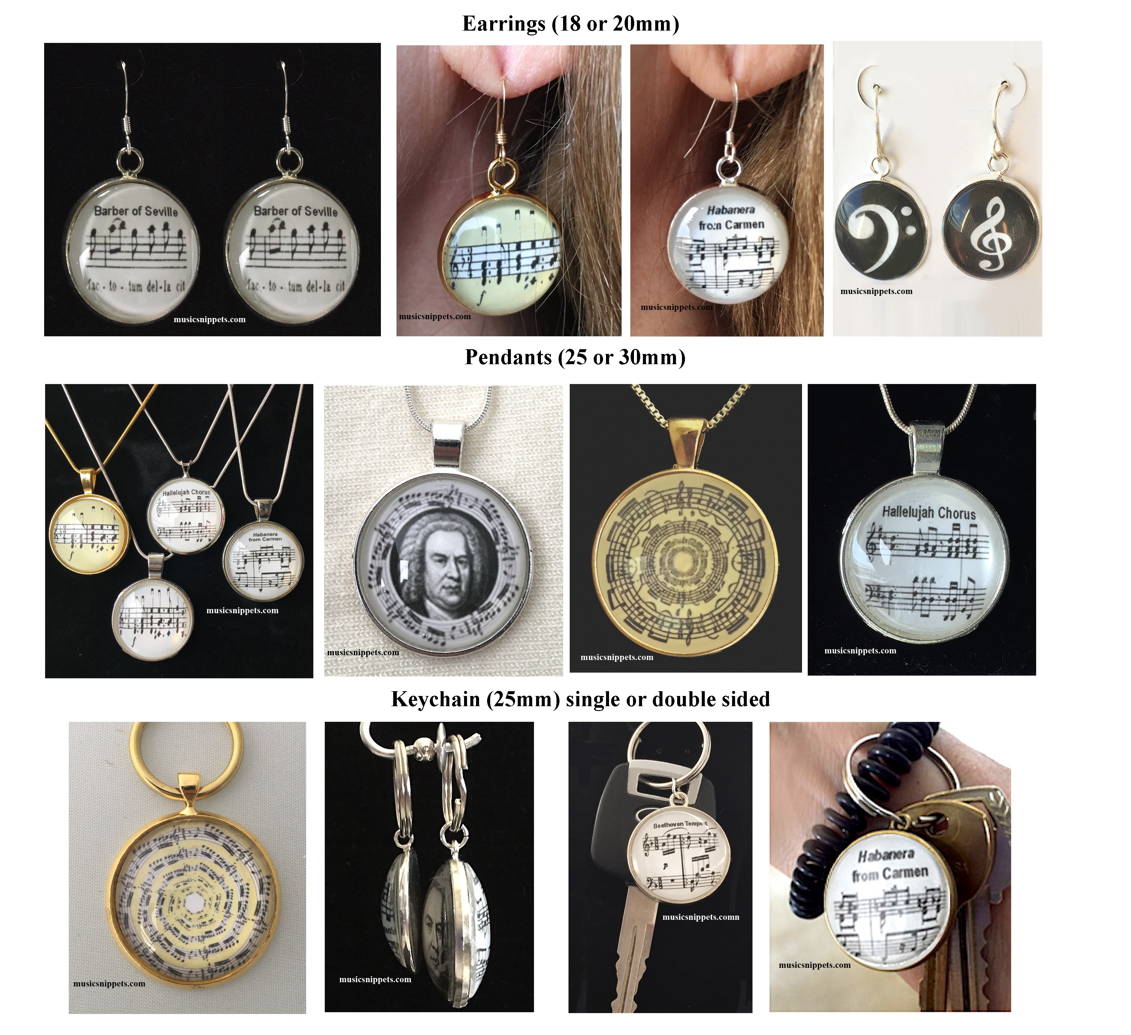 Welcome to MusicSnippets.com where you will find jewelry displaying snippets from favorite pieces by classical music composers — BACH, BEETHOVEN, BIZET, BRAHMS, CHOPIN, GRIEG, HANDEL, LISZT, MOZART, MUSSORGSKY, PAGANINI, PUCCINI, ROSSINI, SARASATE, STRAUSS, VERDI. For a list of the AVAILABLE THEMES, please use CONTACT form below.